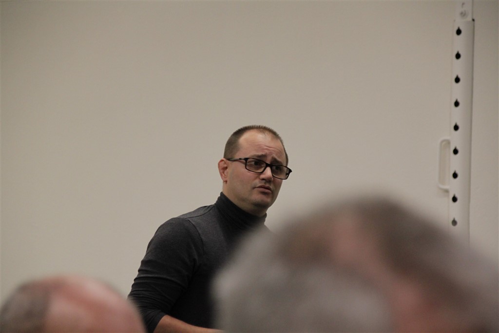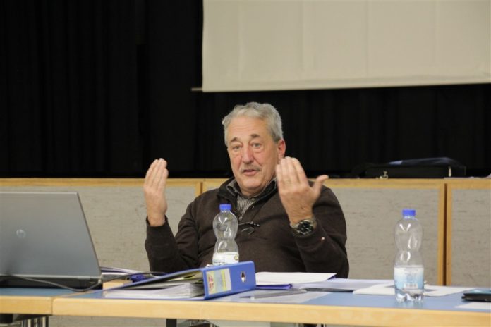 Il sindaco di Brusio, Arturo Plozza durante l'Assemblea comunale del 1° dicembre 2019