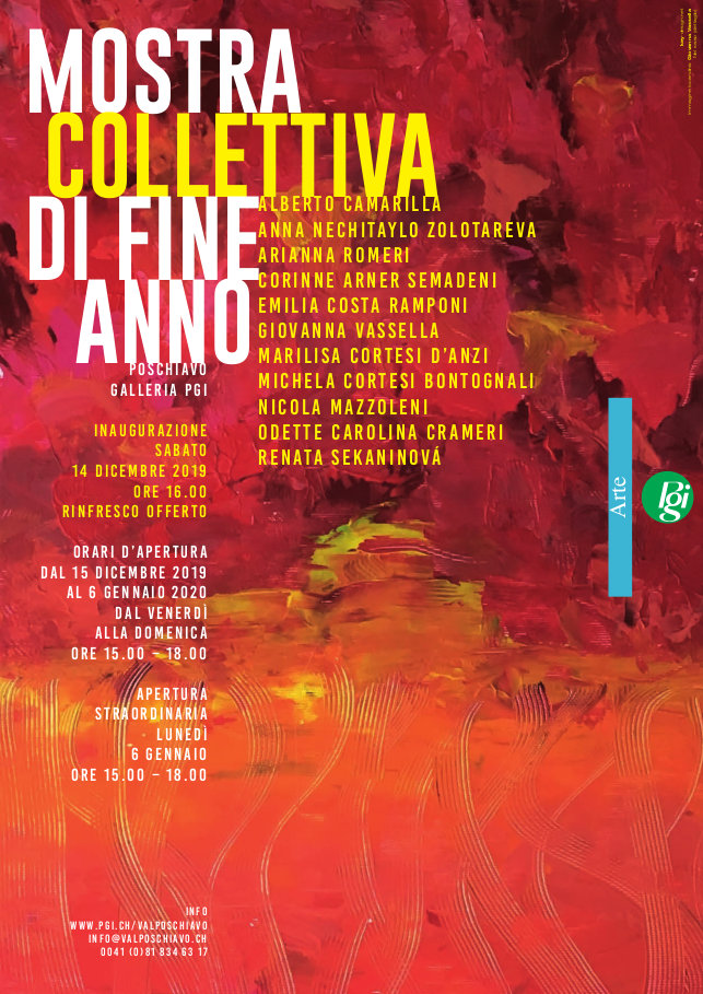 La Mostra collettiva di fine anno chiude come tradizione l’anno espositivo della Galleria Pgi e il programma culturale della sezione valposchiavina della Pro Grigioni Italiano. Grazie alle opere esposte la manifestazione ravviva e colora la piazza principale di Poschiavo durante il grigiore invernale.