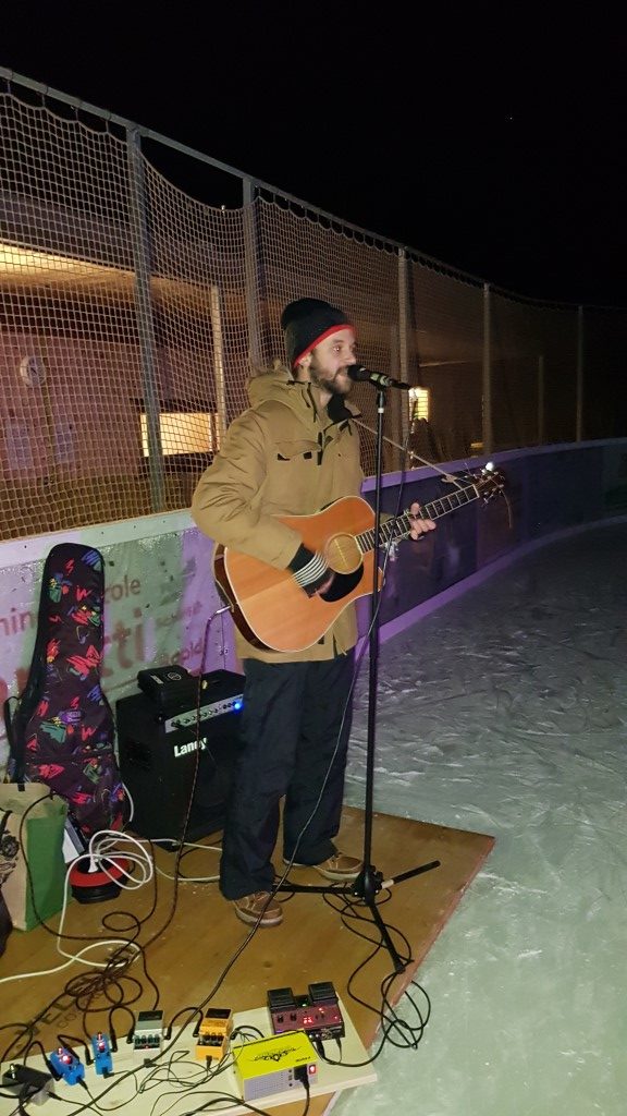 Da questo momento il ghiaccio è stato aperto al pubblico. Luci e musica hanno animato l’inizio della serata. Marco Baumann, accompagnato dalla sua chitarra, ha regalato a pattinatori e pattinatrici un concerto live con tanto di pezzi inediti anche in dialetto.