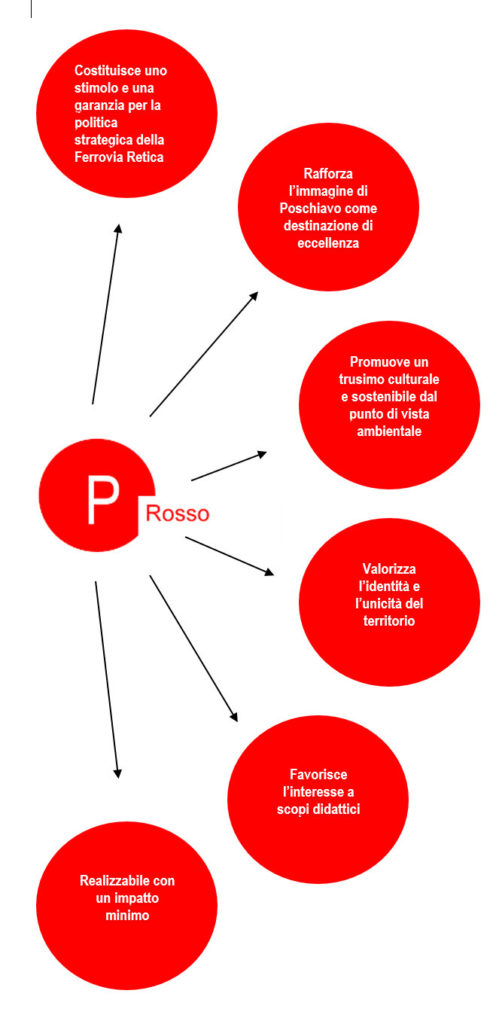 In generale piace il fatto che il PUNTO ROSSO, oltre che capitalizzare le attuali esperienze della Ferrovia Retica, costituisca una base solida per mantenere e consolidare il numero degli interessati alla tratta Bernina. In questo senso il PUNTO ROSSO rappresenta una non trascurabile garanzia per il futuro della stessa Ferrovia Retica. Il progetto trova consensi anche per il fatto che potrebbe attirare e coinvolgere anche i turisti dell’Alta Engadina (2018: 1’580’587 pernottamenti) e quelli della vicina Italia.