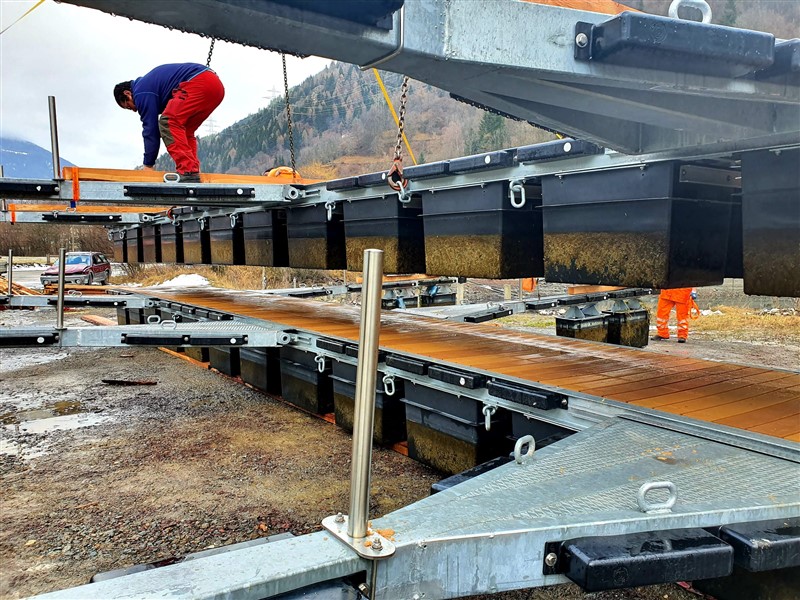 “Il piano di lavoro del porto – spiega il presidente della Società Pescatori Poschiavo (SPP) Vito Crameri – ha richiesto molta attenzione per via delle esigenze locali: la struttura, infatti, ha nelle sue caratteristiche il fatto di essere modulare, ampliabile, di sopportare 9 metri di escursione verticale, ridurre gli investimenti e l’impatto sul territorio al minimo, sopportare venti pari a 130 km/h, così come il fatto di essere rimovibile (con uno stoccaggio facile) ad ogni inverno, evitando i danni causati dal giaccio”.