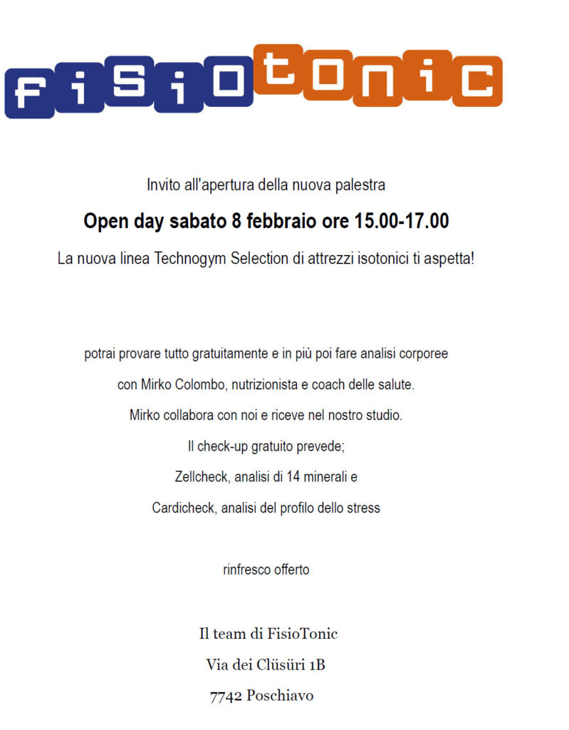 Dalle 15.00 alle 17.00: Open day per l’apertura della nuova palestra a Poschiavo.
