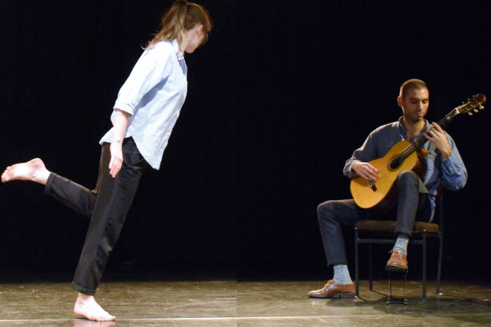 Cordes à Corps è un duo composto da un chitarrista, Mickael Luis, e da una ballerina, Lia Beuchat, che esplorano il rapporto tra musica e danza. Ci siamo conosciuti in Svizzera, dove abbiamo iniziato a lavorare nel 2016. Nel nostro lavoro creativo esploriamo due percorsi: Il primo utilizza la partitura come materia prima: partiture generate in modo casuale e partiture del repertorio chitarristico. Il secondo utilizza l’improvvisazione e più specificamente la composizione istantanea. La nostra parola chiave è essere nel momento presente per costruire qualcosa di unico e incompiuto, permettendo all’attività creativa di continuare. Cerchiamo di allontanarci dalle abitudini e dai ruoli delle nostre arti quando si incontrano. Ogni arte è messa in scena, distinguendosi nel suo ruolo, e si manifesta come attore principale. Ci giustapponiamo alla più bassa gerarchia possibile.