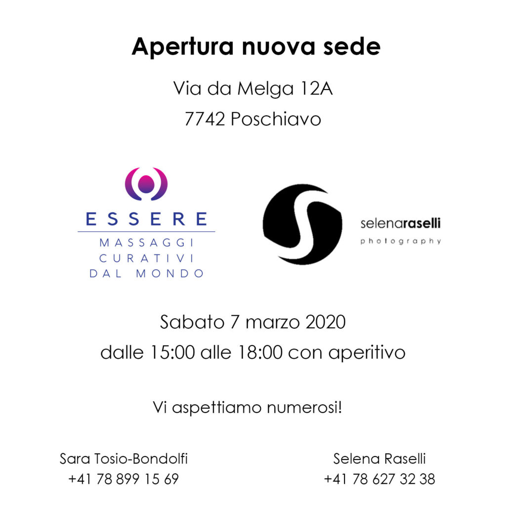 Lo studio Essere – Massaggi curativi dal mondo, sarà aperto il lunedì, il martedì e il venerdì dalle ore 9:00 alle ore 20:00 su appuntamento al numero 078 899 15 69.