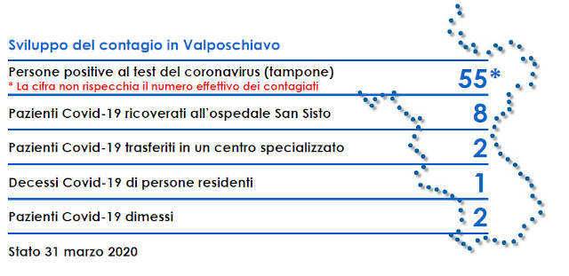 Il numero dei contagi sul territorio della Valposchiavo si sta diffondendo sempre più rapidamente fra la popolazione residente. Il picco massimo non è ancora stato raggiunto, ragione per cui si raccomanda di nuovo a tutti i cittadini di rimanere a casa.