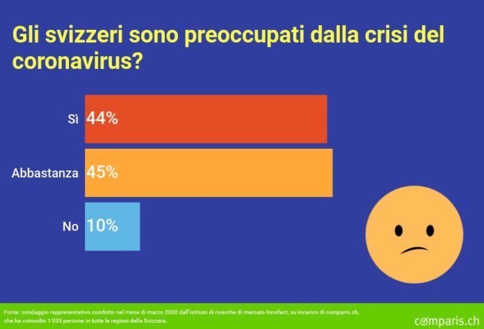 L’88% della popolazione svizzera è allarmato dalla crisi del coronavirus. Questa preoccupazione si riflette anche sulle aspettative economiche individuali: circa il 30% prevede che nel mese di aprile la propria situazione economica sarà peggiore rispetto a quella di marzo. Questo è quanto emerge da un sondaggio rappresentativo di comparis.ch. «L’effetto coronavirus modifica il comportamento dei consumatori: si risparmia di più e spesso si preferisce aspettare a realizzare i desideri sognati da tempo», afferma Michael Kuhn, esperto di finanze e consumo presso Comparis.
