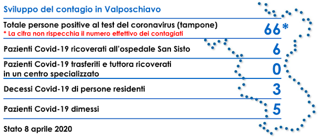 Il numero delle persone contagiate in Valposchiavo è in costante aumento. L’efficacia delle misure di contenimento indica un timido rallentamento della diffusione a livello cantonale.Il picco massimo non è però ancora stato raggiunto perciò si raccomanda nuovamente a tutti i cittadini di rimanere a casa.