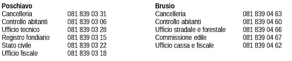 Le Autorità federali hanno comunicato un certo allentamento alle misure straordinarie decretate il 16 marzo 2020 a partire da lunedì 11 maggio 2020. Anche le Autorità comunali di Poschiavo e Brusio hanno deciso di riaprire al pubblico gli uffici comunali.