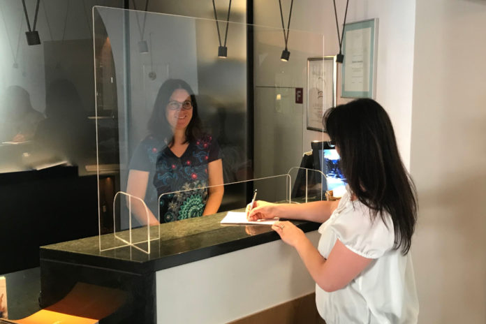La nuova reception a misura di Coronavirus dell'Albergo Croce Bianca