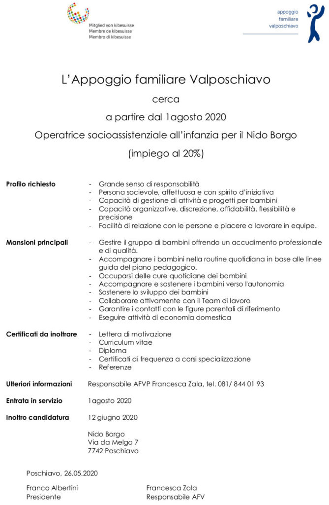Senza categoria Operatrice socioassistenziale all’infanzia per il Nido Borgo Di Annuncio pubblicitario - 27 Maggio 2020 0 694