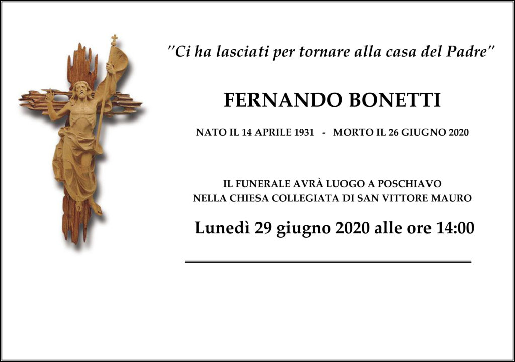 Parrocchia Cattolica San Vittore MauroAnnunci funebri Annuncio funebre: Fernando Bonetti Di Parrocchia Cattolica San Vittore Mauro - 26 Giugno 2020 0 411