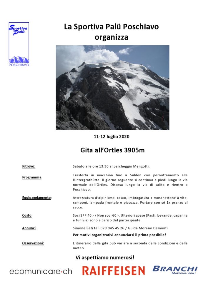 Senza categoria Gita all’Ortles della SPP 11 e 12 luglio Di Sportiva Palü Poschiavo - 3 Luglio 2020 0 117