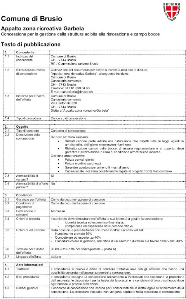 Appalto zona ricreativa Garbela