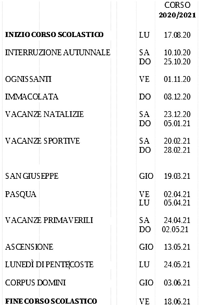 Apertura del corso scolastico 2020 – 2021