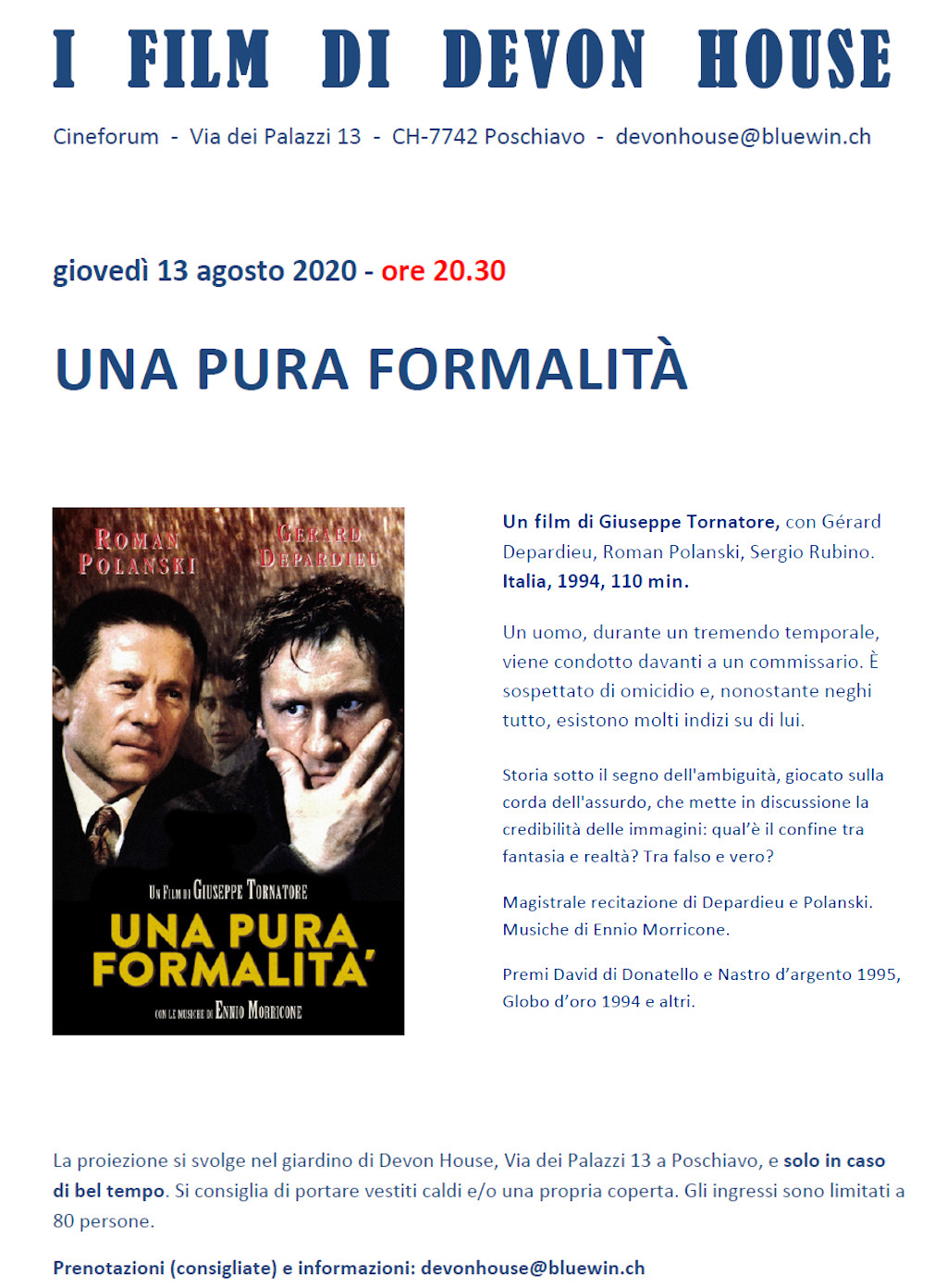 I Film di Devon House: “Una pura formalità” rimandato a sabato