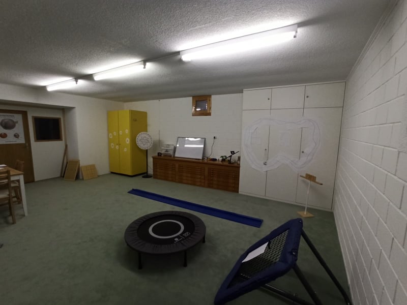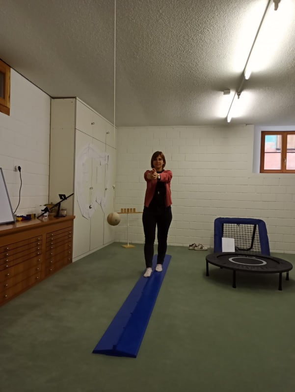Lo spazio dove ci ritroviamo è a prima vista un misto tra una palestra e uno spazio di gioco. Molto spesso c’è infatti una combinazione tra visione e attività motoria: camminare lungo una linea tracciata mentre si interagisce con una pallina appesa e lanciare una pallina in un punto preciso mentre si rimbalza su un tappeto elastico sono solo due esempi di quello che si fa nelle sessioni di visual training.