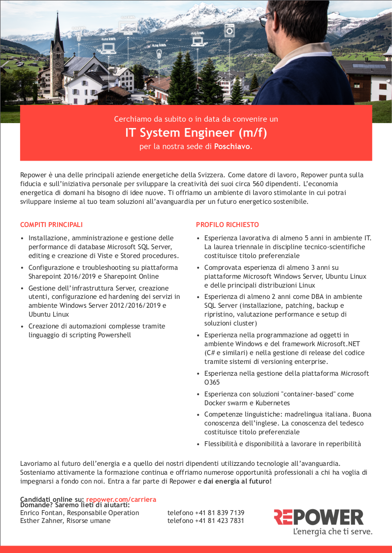 Senza categoria Cerchiamo IT System Engineer (m/f) Di Annuncio pubblicitario - 8 Gennaio 2021 0 389 Clicca qui per accedere al PDF