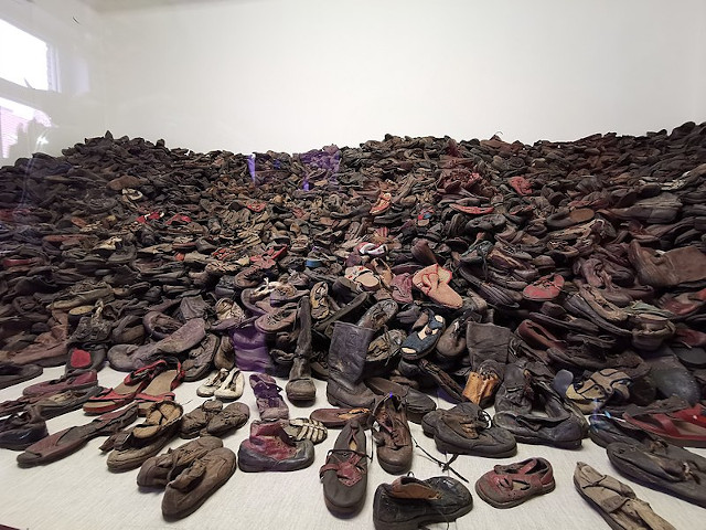 Scarpe raccolte e conservate nel museo di Auschwitz - CC BY-SA 3.0 - immagine da Wikipedia - Author Pensierarte