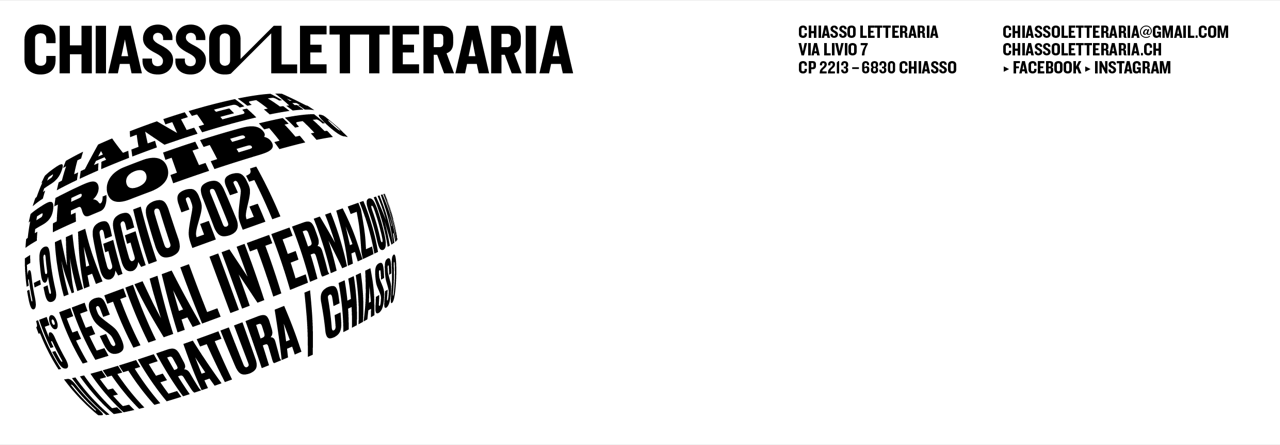 La quindicesima edizione di ChiassoLetteraria, festival internazionale di letteratura di Chiasso, dal tema quanto mai evocativo del “PIANETA PROIBITO”, avrà luogo nei giorni dal 5 al 9 maggio 2021, pandemia permettendo, con un programma pensato per la probabile ridotta capienza delle sale e con gli incontri fruibili anche in streaming. A questo si aggiunge un piano di riserva: in caso la pandemia impedisse gli eventi di maggio, è stato già fissato un eventuale slittamento nella prima settimana di settembre (da mercoledì 1 a domenica 5).