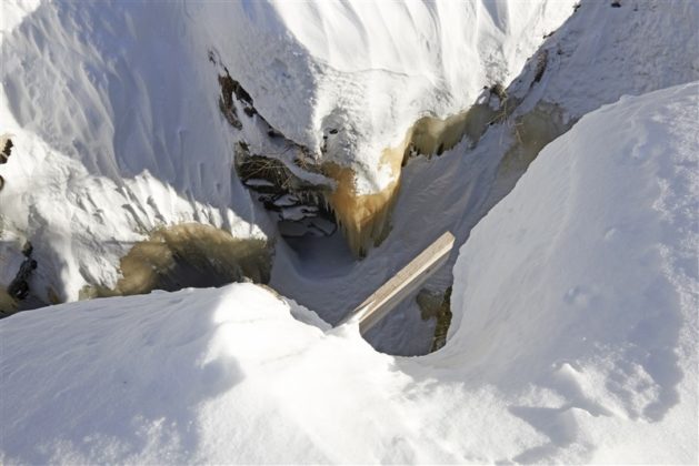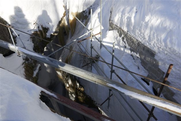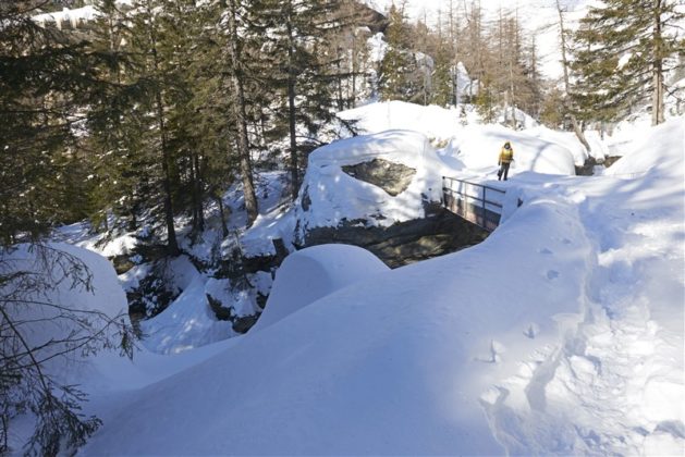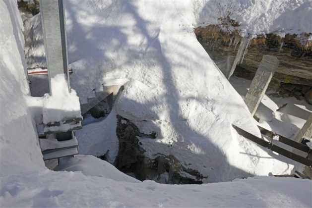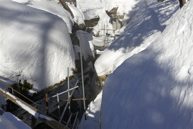 Orrido di Cavaglia sommerso dalla neve: “Nessuna conseguenza per il cantiere”