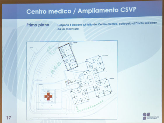 Il progetto, comprendente ambedue le fasi realizzative, – ha spiegato il direttore del CSVP, Guido Badilatti – prevede un investimento totale di circa 8 milioni di franchi (6.5 milioni per la prima fase e 1.5 per la seconda), interamente finanziati tramite il fondo investimenti del CSVP; per questo motivo non sarà necessaria alcuna votazione popolare. “Realizzando questo progetto – ha aggiunto il podestà Giovanni Jochum – diamo una prospettiva futura al servizio sanitario vallerano, creando i presupposti necessari per garantire il rinnovo dei medici accreditati”.