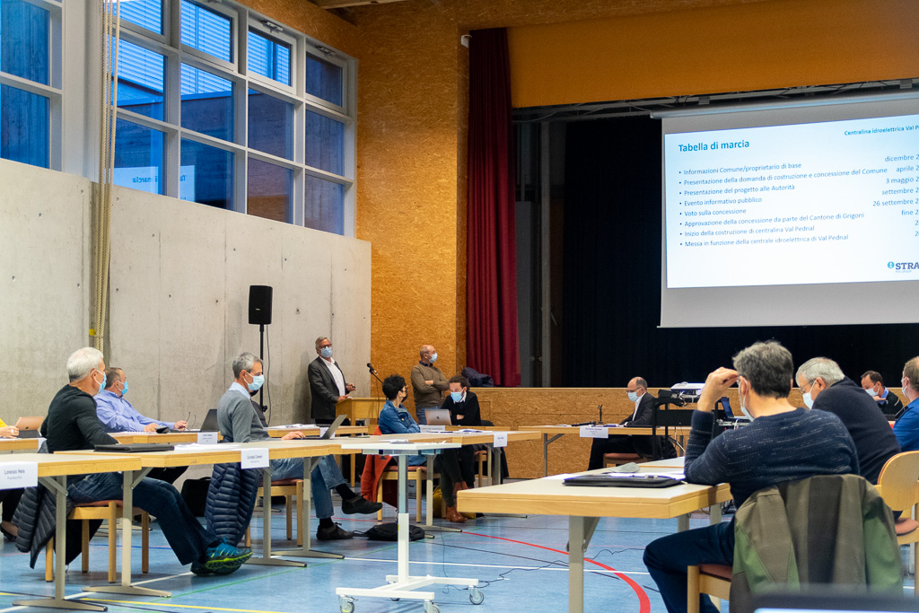 Durante la seduta di Giunta di lunedì 3 maggio, i presenti hanno potuto assistere alla Presentazione del progetto per una centralina idroelettrica “Val Pednal” da parte della ditta Straub AG. Trattandosi di un’informazione, non ci sono state votazioni in merito. Per completezza di informazioni pubblichiamo il comunicato stampa integrale relativo all’argomento e le slide della presentazione.