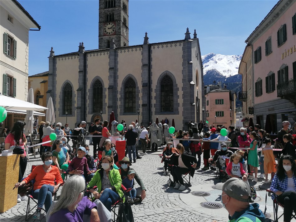 Sabato, in piazza a Poschiavo, vi è stato lo spettacolo di apertura dell’evento che ha visto come protagonisti i Viscui furmighin (diretti da Karin Zanolari e Patrizia Fini), una formazione di ballo tradizionale e folcloristico composto da persone giovanissime che hanno coinvolto il pubblico grazie alla loro naturalezza nei movimenti.