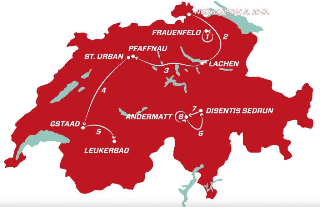 Il Tour de Suisse percorrerà il territorio della Confederazione in otto tappe.