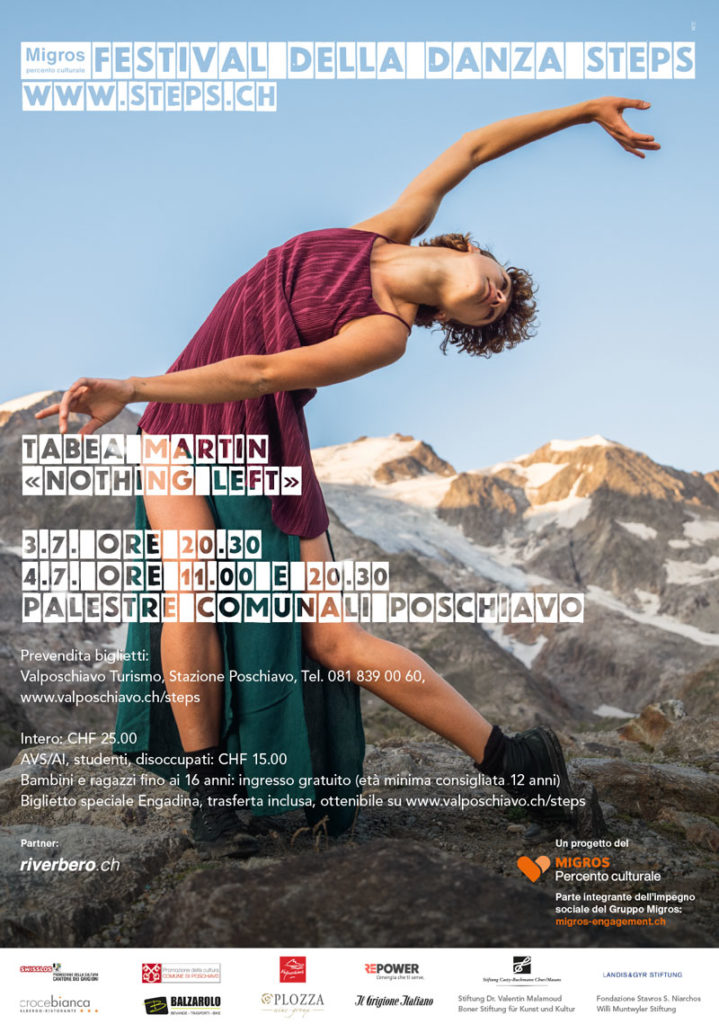 Abbiamo così deciso di portare avanti la nostra collaborazione con Steps. “Nothing Left” è il secondo spettacolo che portiamo nell’ambito di questo festival biennale e avrebbe dovuto essere presentato nel maggio del 2020. Essere parte di eventi di portata nazionale come questo è molto importante, crea legami, coesione e conferisce visibilità alla Valposchiavo.
