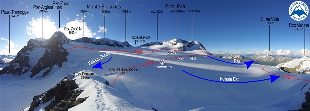 Per la parte italiana è intervenuto il sindaco di Lanzada, Christian Nana, che ha posto l’accento su di una porzione del progetto Interreg di particolare valore scientifico: la ricerca sul ghiacciaio Fellaria-Palù condotta dal Servizio Glaciologico lombardo. Per conto di questo sodalizio Riccardo Scotti ha illustrato lo stato dell’arte.”