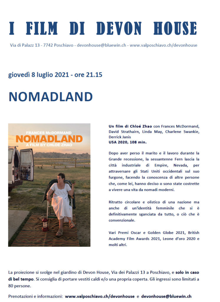 La proiezione di “Nomadland” rinviata a sabato 10 luglio