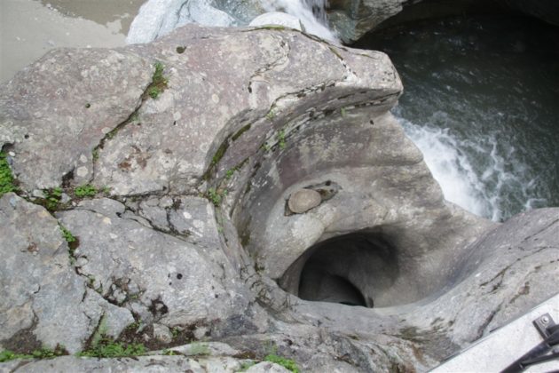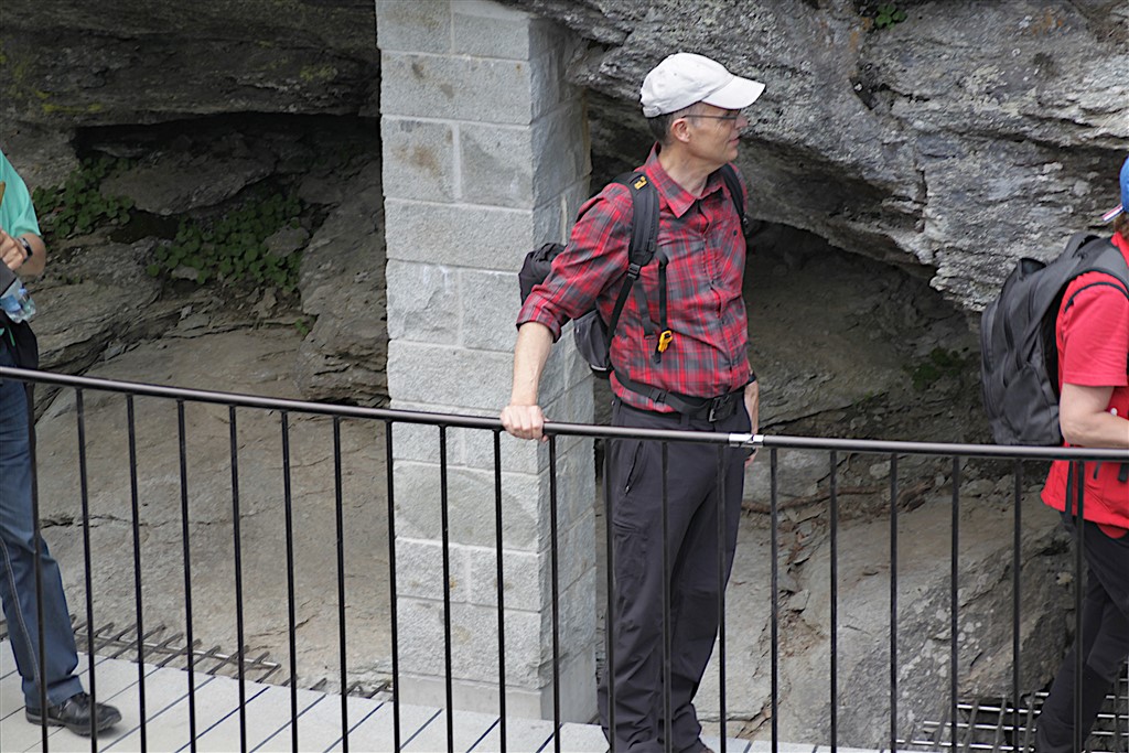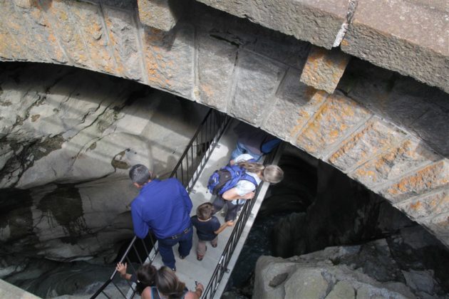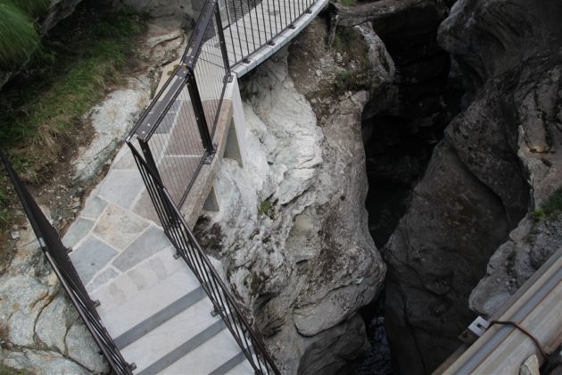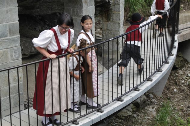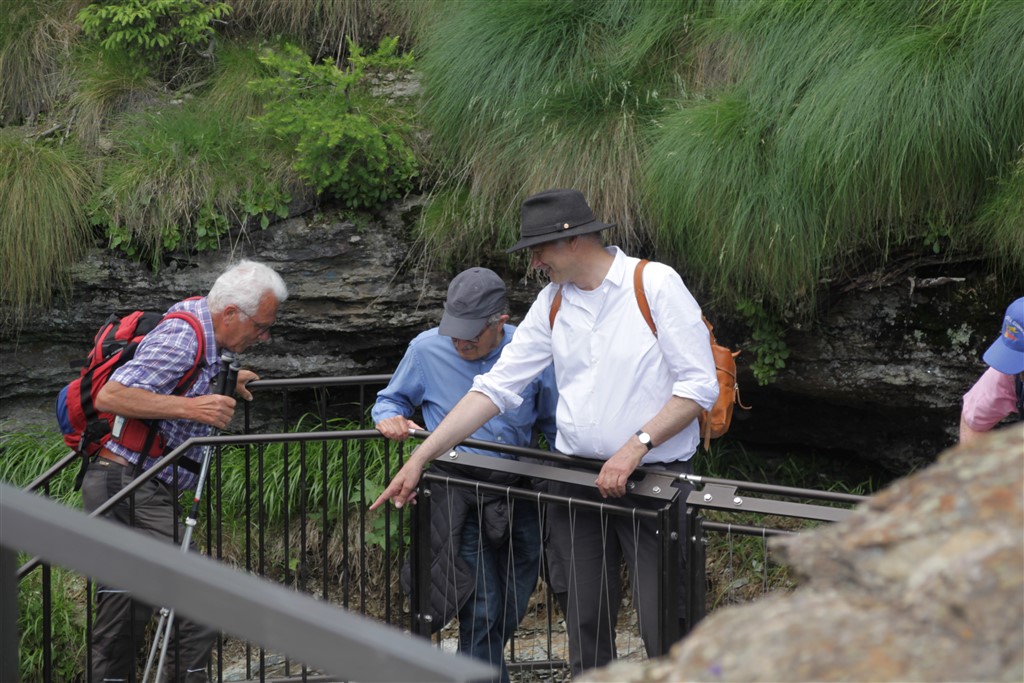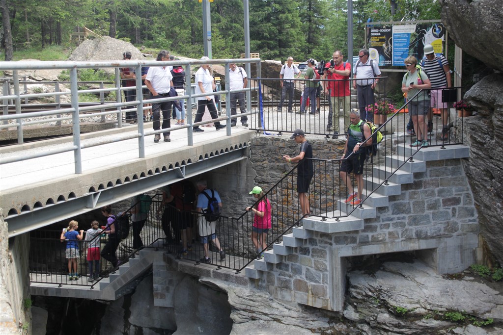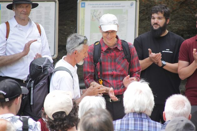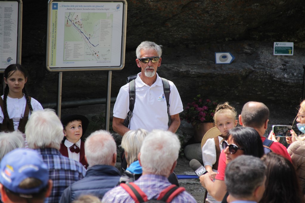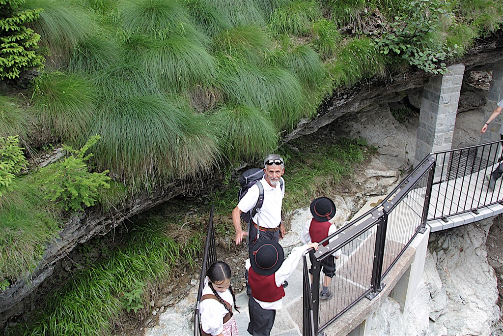 Un commosso Romeo Lardi, storico presidente del Giadino dei Ghiacciai di Cavaglia (GGC), ha presentato e poi guidato gli intervenuti attraverso il nuovo sentiero che attraversa la parte alta della gola rocciosa del Cavagliasch, all’estremità sud-est della piana di Cavaglia, seguendone la parete sinistra per ben 180 metri, con un nuovo ponte e oltre 100 gradini. Il percorso all’interno della gola rende accessibili al pubblico circa dieci nuove marmitte dei giganti, più di dieci turbinii d’acqua e grandi sporgenze simili a caverne tutt’oggi nascoste a visitatori e passanti.