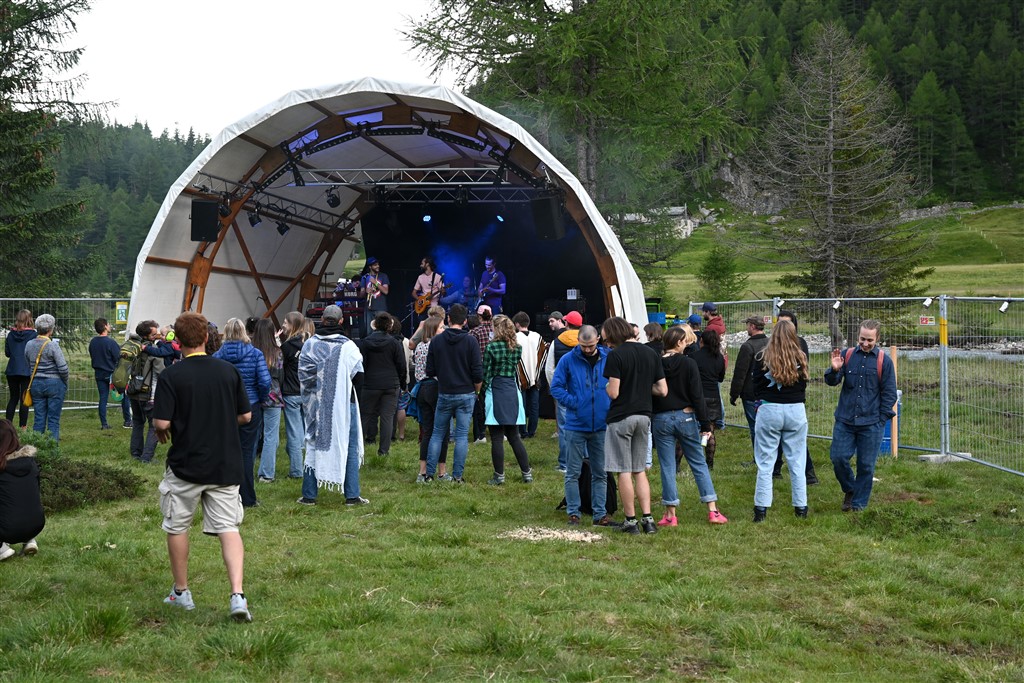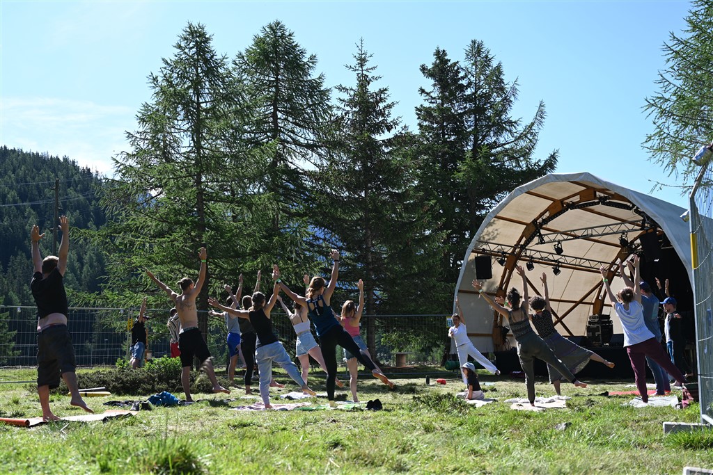 Il venerdì sera infatti si sono esibiti ben 4 band diverse e nel mentre ha avuto luogo pure un atelier impro-teatrale, mentre dalle 23:30 in poi ci si è potuti scatenare presso il dj set. Sabato mattina si sono tenute delle lezioni di Yoga, dei racconti per i più piccini e non, la consueta sessione di Bodypainting, la meditazione guidata, un atelier di pulizia dentale, 5 episodi di spettacoli teatrali e infine un atelier fai da te. Insomma i partecipanti hanno avuto modo di sbizzarrirsi e sicuramente non si sono annoiati. I più temerari inoltre hanno fatto visita alla cascata di Cavaglia e approfittando del clima si sono dati una rinfrescata. Dalle 18:30 in poi invece hanno proseguito i concerti, con ulteriori 4 band e successivamente, a notte inoltrata con la Jam Session e due diversi dj set. Nonostante le intemperie di sabato notte i partecipanti non si sono fatti scoraggiare ed hanno festeggiato fino a notte fonda, felici di poter tornare a trascorrere del tempo insieme in allegria. Per concludere anche alla domenica è stata aperta la cucina dell’Openair e i partecipanti potevano gustarsi l’evento Little Lady, il tappeto dei racconti oppure dedicarsi alla visita guidata del vicino Giardino dei Ghiacciai. In seguito alcune immagini che ben rendono l’idea della partecipazione e dell’entusiasmo che hanno caratterizzato questo lungo weekend di festa.
