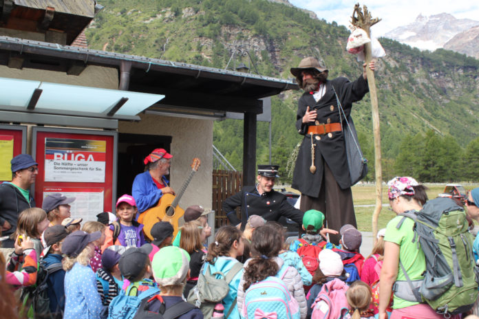 Grummo non vede l’ora di fare gli onori di casa e di accogliere i piccoli visitatori. Pieno di orgoglio mostrerà loro le sue marmitte, dove si diverte a cucinare la sua golosa minestra alle erbe e le migliori tisane di tutte le Alpi. Attenzione: non dimenticate di portare il pranzo al sacco, mangeremo nel bel mezzo del fantastico Giardino dei Ghiacciai.