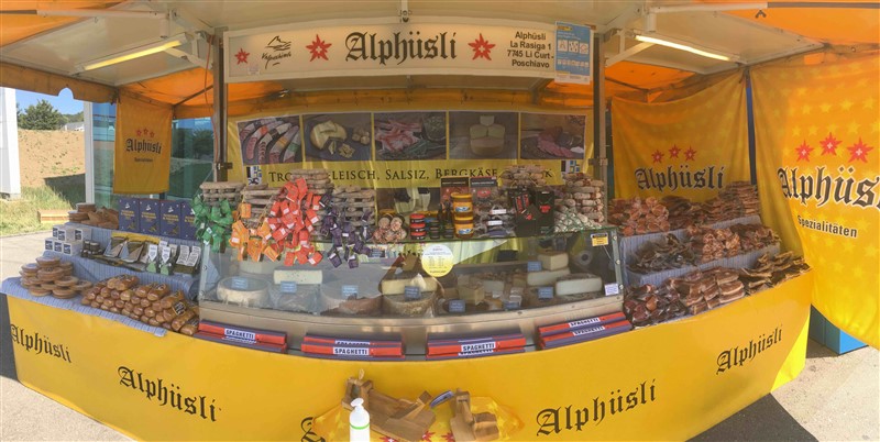 Forse ci hai conosciuto in una fiera o in un’esposizione. Dal 2005, data di fondazione di Alphüsli, abbiamo instancabilmente portato le specialità grigionesi in tutti gli angoli della Svizzera con i nostri caratteristici stand gialli. Per il 2021, siamo stati nominati dall’Aiuto alla montagna per il conferimento del Prix Montagne 2021. L’obiettivo è quello di onorare le aziende che portano il loro valore aggiunto alle regioni montane. Oltre al premio assegnato dalla giuria, uno dei sei candidati vincerà anche il premio del pubblico. Vota il tuo preferito fino al 19 agosto a questo link: https://www.prixmontagne.ch/it/publikumspreis. Come ogni candidato, siamo naturalmente felici di ogni voto e come al solito continueremo a vendere pasticcini, formaggio e carne secca.