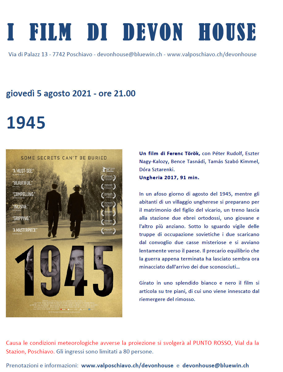 CulturaTop I Film di Devon House: “1945” – Presso il Punto Rosso (causa maltempo) Di I Film di Devon House - 4 Agosto 2021 0 155