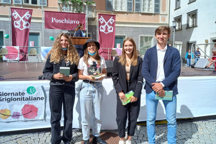 Domenica 8 agosto 2021 a Poschiavo, nell’ambito delle “Giornate Grigionitaliane” promosse dall’associazione Pro Grigioni Italiano (Pgi), sono stati premiati Marta Gay e Celeste Friso, entrambe di Maloja, e Pietro Giovanoli di Soglio, tre studenti liceali dell’Academia Engiadina di Samedan, per la loro partecipazione al concorso letterario di narrativa dal titolo “Sentirsi a casa”.