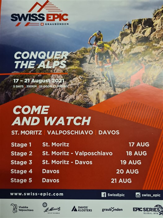 Oggi, mercoledì 18 agosto, la Valposchiavo ha ospitato la seconda tappa della Swiss Epic 2021, la gara per mountain bike che in 5 giorni (dal 17 al 21 agosto) percorre 350 chilometri e supera 12’000 metri di dislivello. Gli atleti, in data odierna, hanno percorso 72 chilometri, da St. Moritz (1822 metri) fino alla Valposchiavo (Le Prese, 965 metri). Una tappa piena di discese, con la parte da leone dei 3’150 metri di discesa dopo la salita al Passo del Bernina.