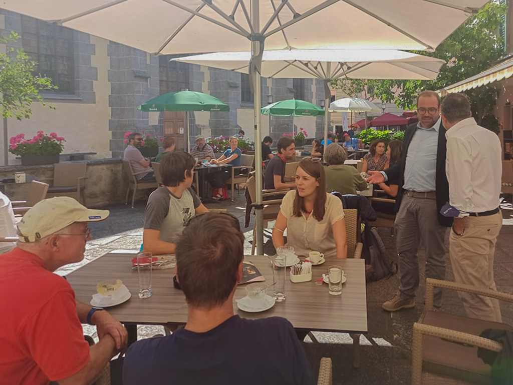 I partecipanti sono stati ricevuti all’Ospizio Bernina e in seguito Cassiano Luminati li ha scortati al borgo di Poschiavo, dove hanno potuto fare una pausa in piazza godendosi un caffè o un gelato. Approfittando di questa pausa, abbiamo intervistato Daniel Arn, sostituto caposezione della Sezione “politica del paesaggio” in seno all’ufficio federale dell’ambiente.