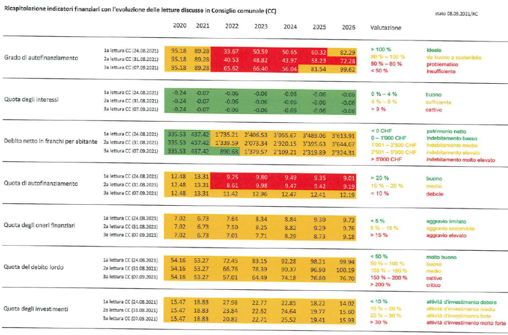 Il Consiglio comunale ha discusso durante tre riunioni il piano finanziario per gli anni 2022 – 2026. Le discussioni si sono incentrate valutando in primo luogo il conto investimenti e in seguito il conto economico confrontando le cifre con il preventivo e il consuntivo degli anni precedenti. Da un’analisi della situazione, il consiglio comunale ha evidenziato alcuni punti fondamentali: