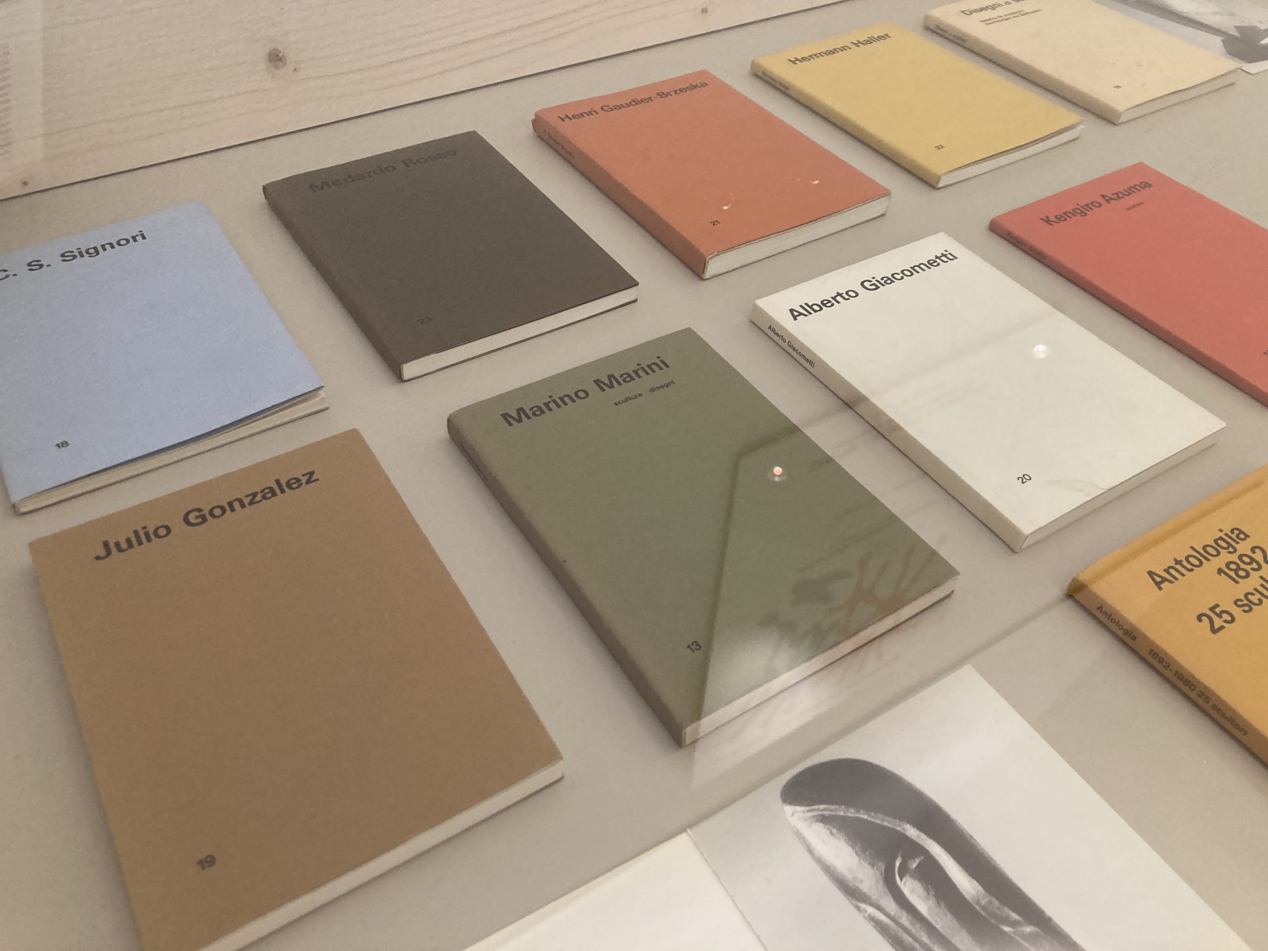 In mostra anche i cataloghi della galleria d’arte Pieter Coray di Lugano, con copertine di diversi colori in un formato decisamente piccolo e controcorrente rispetto ai classici cataloghi d’arte. In questa sezione a uno sguardo attento risaltano anche i nomi del bregagliotto Alberto Giacometti e del valtellinese Mario Negri.