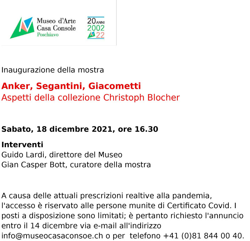 Inaugurazione mostra “Anker, Segantini, Giacometti”