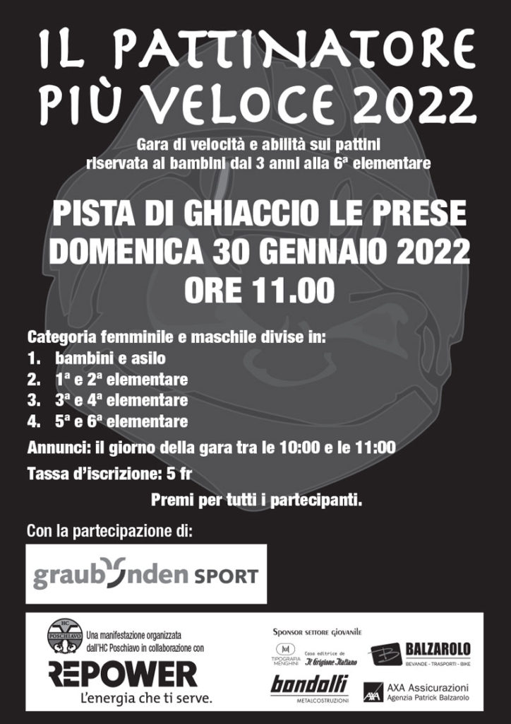 Last but not least, l’HCP invita i più giovani a partecipare all’annuale gara del Pattinatore più veloce questa domenica, 30 gennaio, sul ghiaccio di Le Prese. Eventuali cambiamenti di programma saranno comunicati sul sito e sui canali social del club.