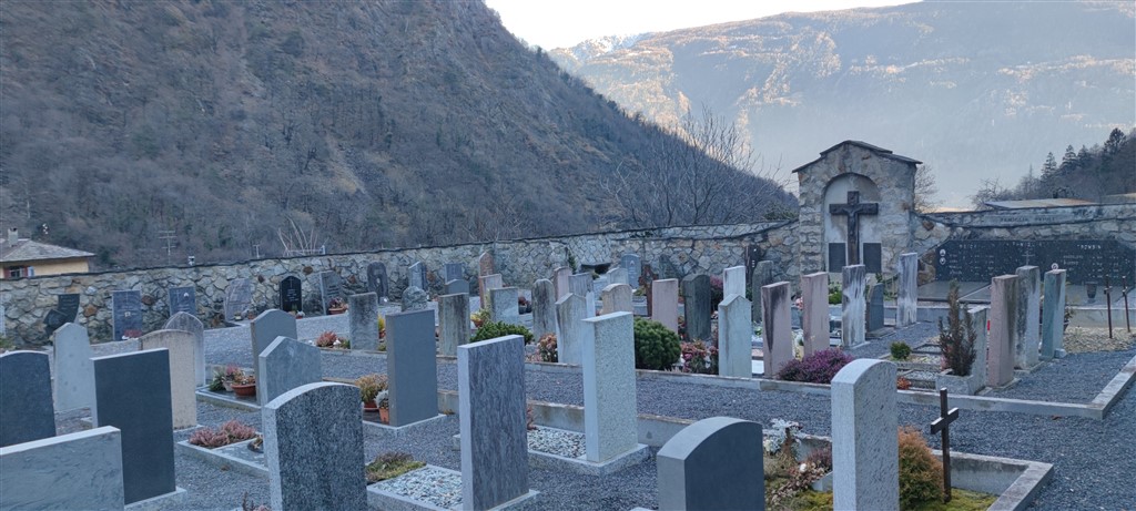 Ma una signora entra nello spazio della memoria, nel cimitero, intendo, e le chiedo se conosce la storia di quella donna morta durante la Seconda guerra mondiale sui monti di Campocologno, e lei mi dice di sì, che la madre le aveva raccontato delle urla dei poveri bambini ma non mi sa indicare la tomba: mi dice di chiedere al parroco. Poi verrò a sapere che le tombe vengono smontate e probabilmente la famiglia avrà avuto indietro la sua lapide.