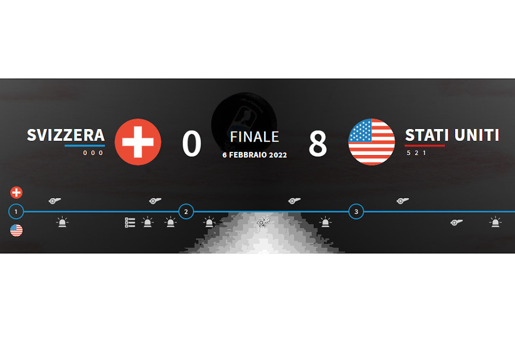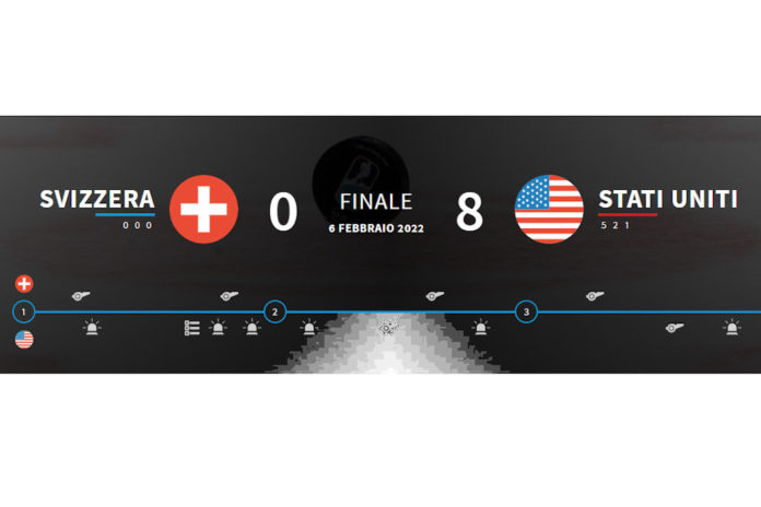 Terminata da poco la terza partita del Gruppo A per la nazionale svizzera di hockey femminile. Ad avere la meglio sulla compagine elvetica, ancora a secco di vittorie, sono state questa sera le discatrici statunitensi che si sono imposte con un netto 8 a 0.