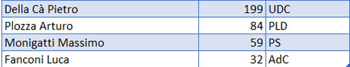 A livello brusiese si potrebbe pensare, vista la riconferma di Pietro Della Cà, che non ci siano state sorprese. Ma la realtà dei fatti impone una riflessione, considerando che il principale oppositore del rappresentante dell’UDC era il sindaco, Arturo Plozza (PLD). Il primo cittadino ha ottenuto meno della metà dei voti Della Cà, che ha totalizzato più voti di tutti gli altri sfidanti messi insieme: un risultato di cui può essere certamente lusingato.