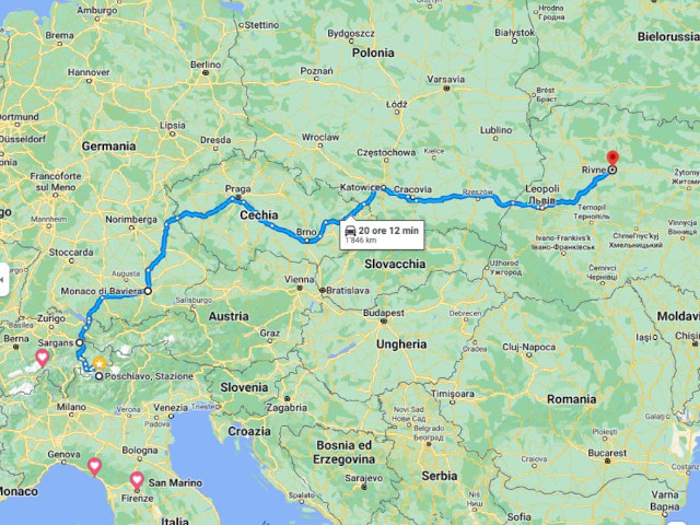 Sono 1’850 km attraverso la Svizzera, Austria , Germania, Cechia, Polonia e Ucraina