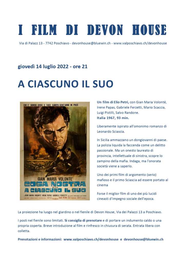Caro pubblico, giovedì 14 luglio 2022, alle ore 21, proietteremo il film