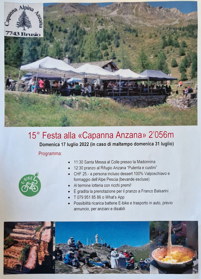 A partire dalle 11.30, presso Alpe Pescia, dopo due anni di stop, torna la tradizionale Festa alla Capanna Anzana.