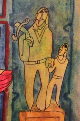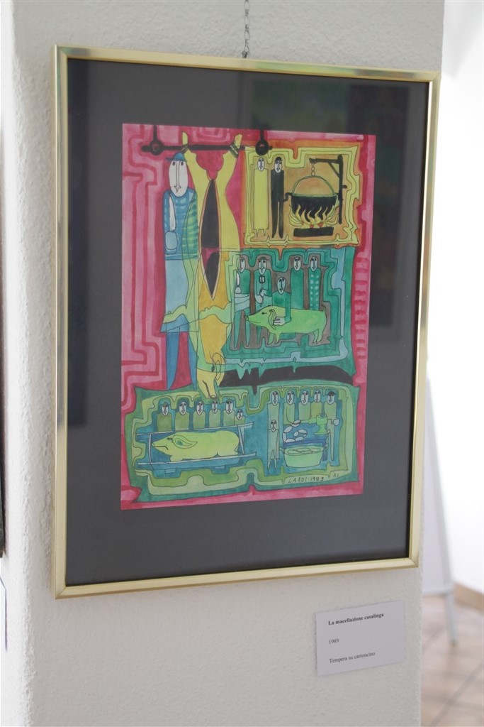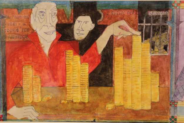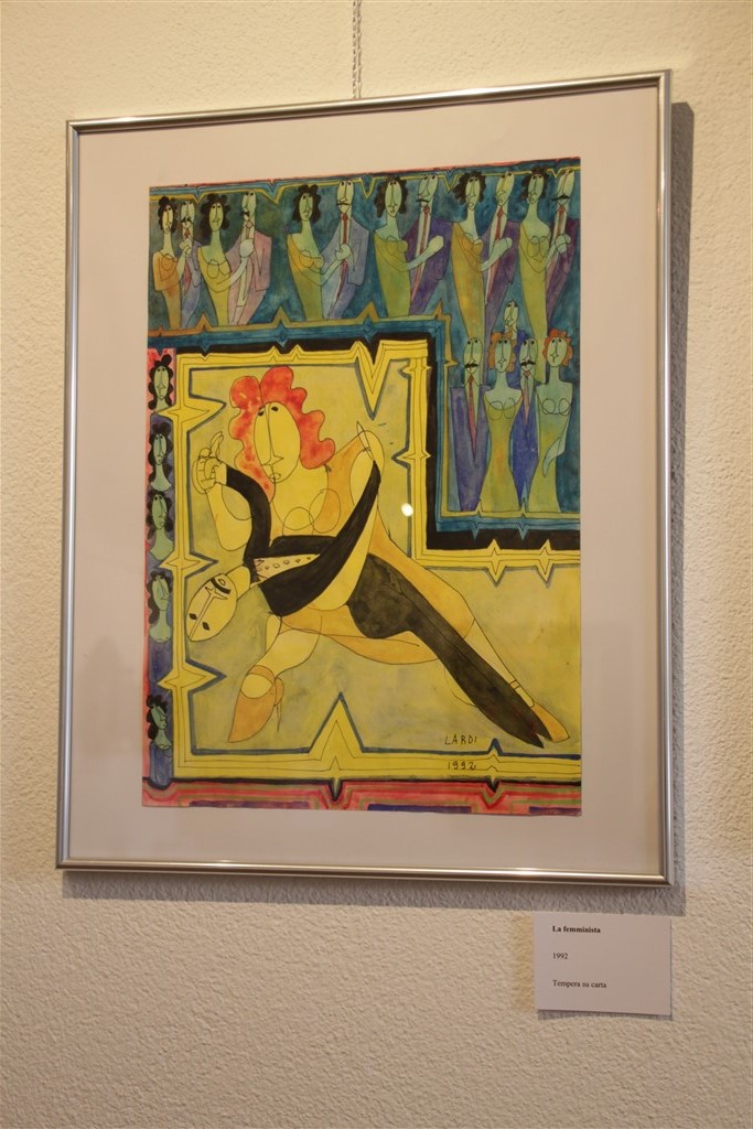 Bernardo Lardi – lo testimoniano le poche esposizioni tenute in vita – non ha però mai posto la sua arte in primo piano e nemmeno decise di dedicarvisi con maggiore fervore, frequentando ad esempio un’accademia o altro. La sua “mano intelligente” – come poeticamente definita da Ambrosioni – non proveniva però solo dall’interesse al mondo pittorico o dall’acquisizione di nozioni autodidattiche, ma anche da uno sguardo attento e al contempo disilluso sugli eventi della vita. È da questo sguardo che nascono molte sue raffigurazioni, che nella forma stilizzata e caricaturale degli elementi messi in campo trovano l’espressione più matura ed originale.